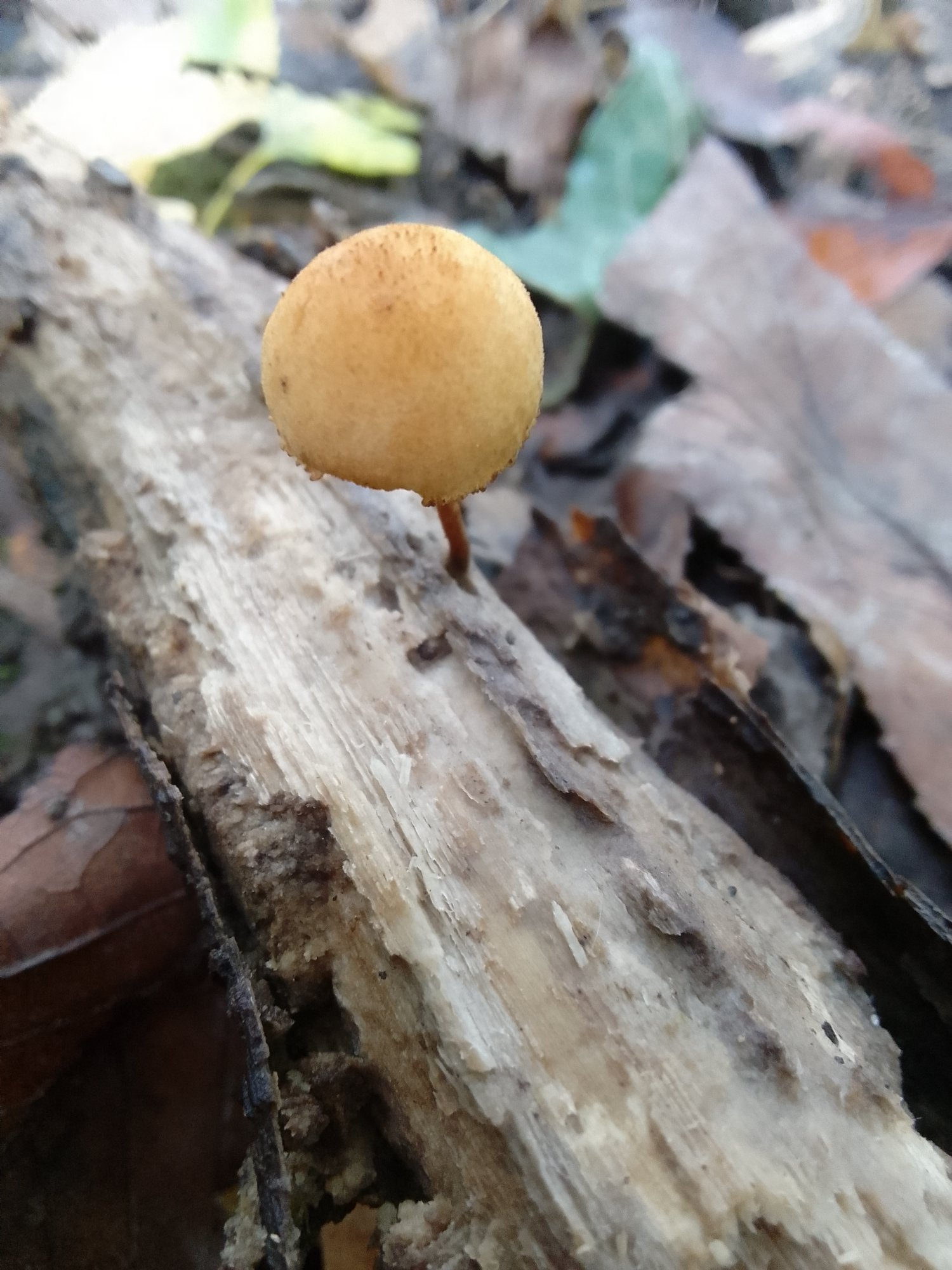 Chapeau granuleux au toucher jaune brunatre, pied fin rougeatre en bas, méchuleux.