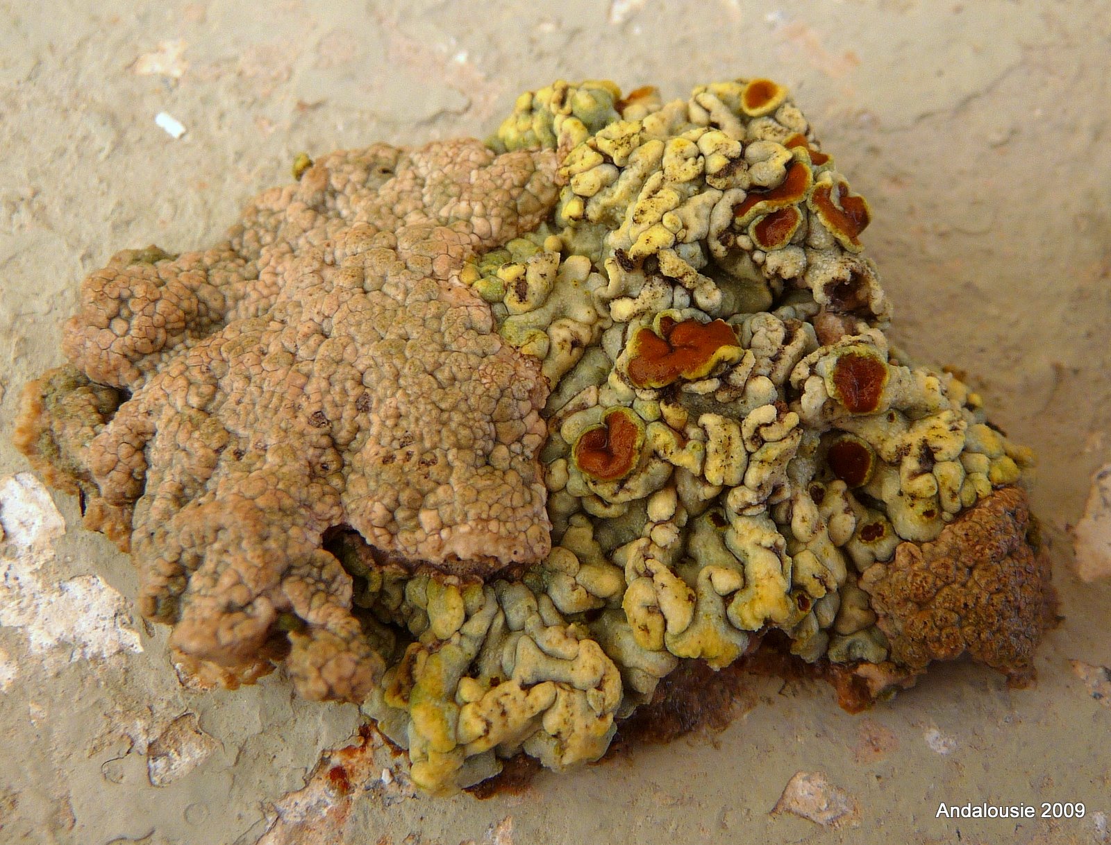 comme le 1 , lichen terricole, thalle cerebriforme se teintant de jaune vert à l'humidité, blanc sinon.