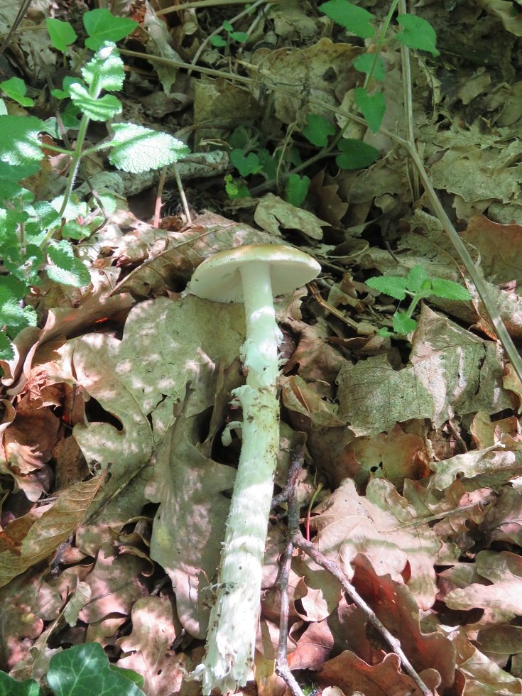 La couleur du chapeau et le pied très long, et probablement profondément enfoui avant la cueillette (?), m'évoque une autre espèce, mais il lui reste habituellement des trace de voile sur le chapeau.