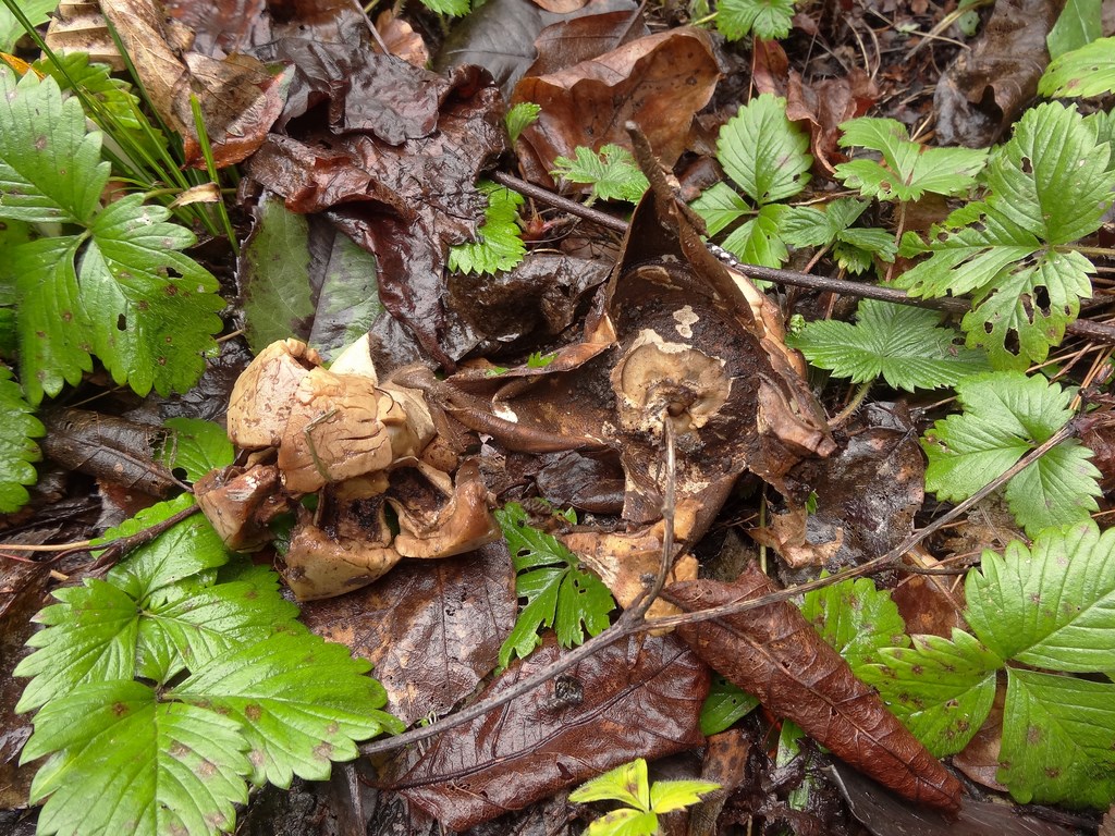 Trouvé ce matin 1 février dans mon jardin, dans une plate-bande de terre de bruyère où poussent rhododendrons, azalées et fraises des bois, au pied d'une haie de lauriers. Pied en étoile à 4, 5 ou 6 branches, certaines beige comme la boule centrale, d'autres nettement plus foncées (brunes) peut-être plus vieilles. Les plus gros font presque 12 cm de diamètre, la boule environ 5 cm, qui dégage une glèbe brune à odeur un peu caoutchouteuse. Saveur douce, qui me faisait pencher vers Geastrum fimbriatum selon le GEPR, mais ce champignon ne préfère t'il pas les terres calcaires? L'habitat et surtout la boule posée sur une soucoupe correspondent mieux à G. triplex, mais celui-ci est censé être amer, non?