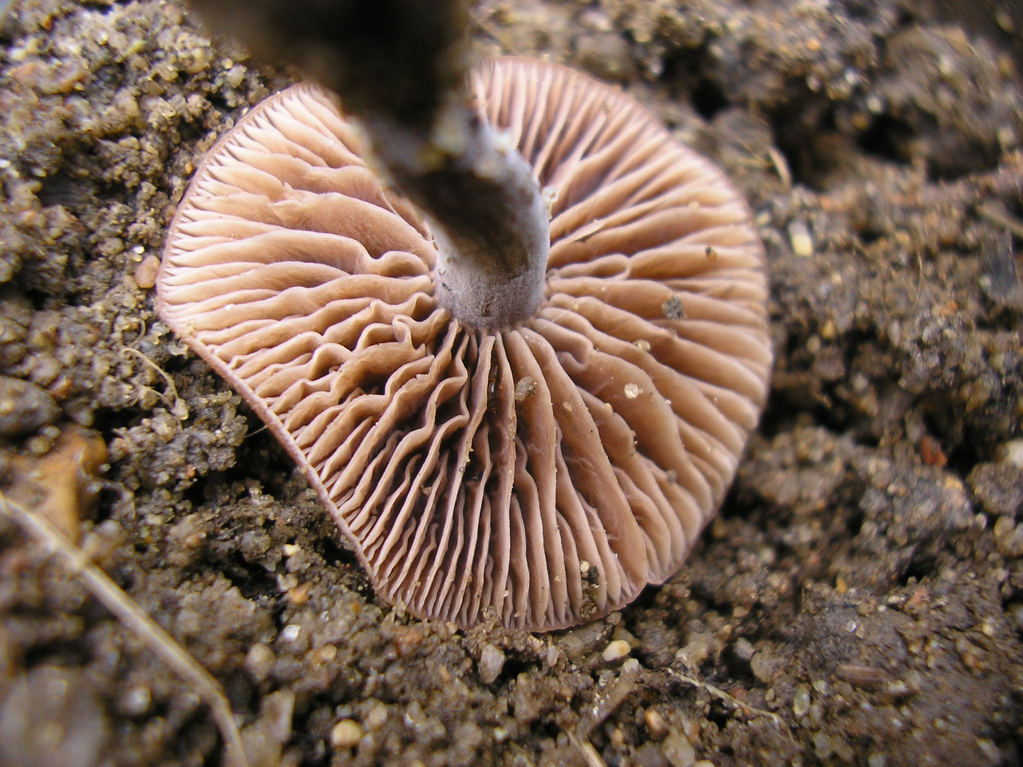 Bonjour à tous, ce matin ce champis de 3 cm de diamètre pour le chapeau, pied pruineux blanc vite enlevé au toucher pour un stype brun rouge, les cordons mycéliens m'ont orienter vers Gymnopus graveolens, cet a-m en cherchant un sclérote j'ai trouvé que les cordons mycéliens entouraient plutôt l'oignon d'une ail sauvage.Merci de vos avis .Ce soir, sporée blanche.