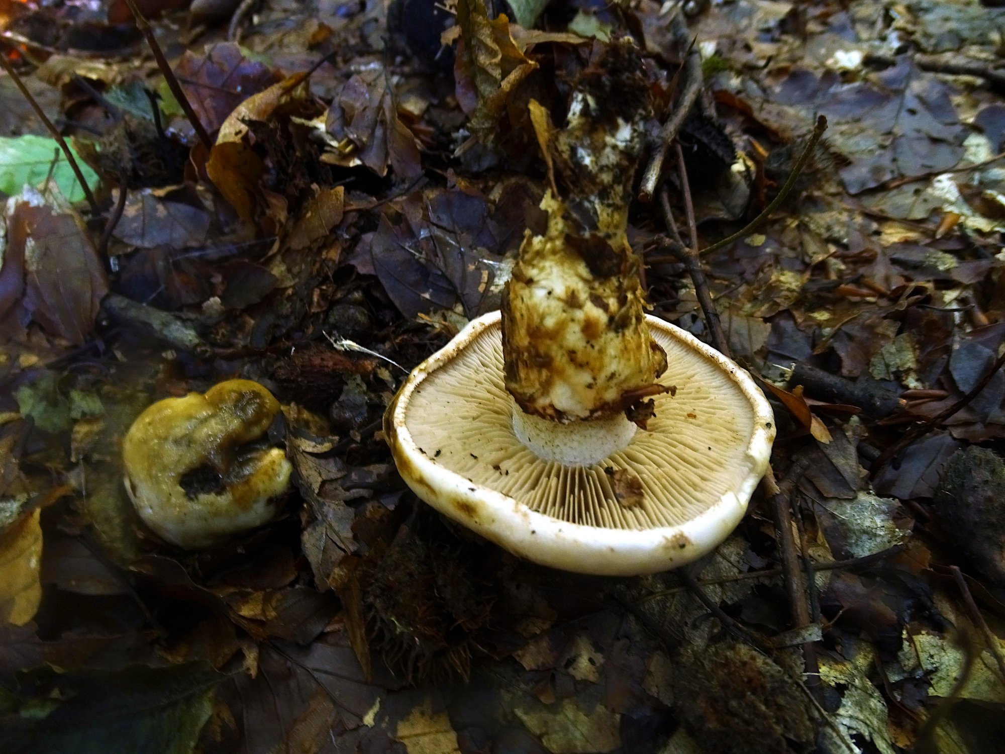 Vous l'avez bien reconnue, y compris Nommo après coup, je pense, il s'agit de Hebeloma radicosum, un hébélome atypique et ainsi reconnaissable bien plus facilement que les autres, avec sa racine assez longue et son odeur forte d'amande amère.