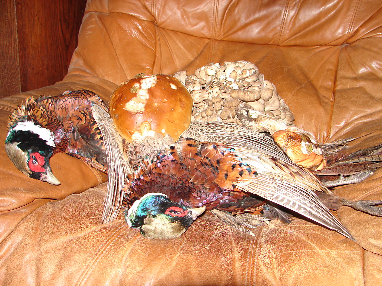 je préfère cela : vous remarquerez une belle Grifola frondosa (polypore en touffe) le gibier donné par un ami chasseur