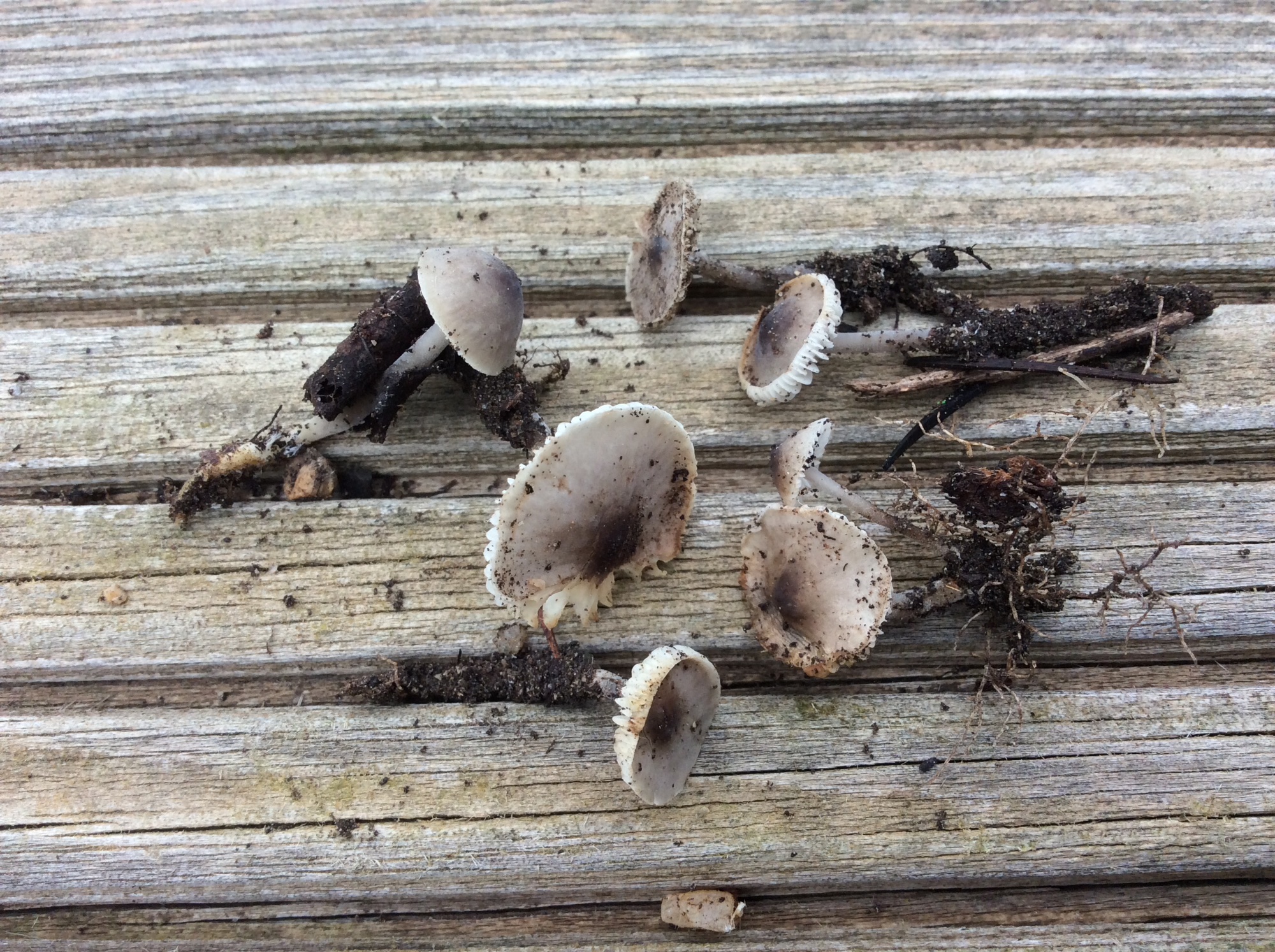 Dans la plate-bande d’un parc urbain, Octobre 2017. Tephrocybe s.l. ? Hydropus ? Mycenella ?