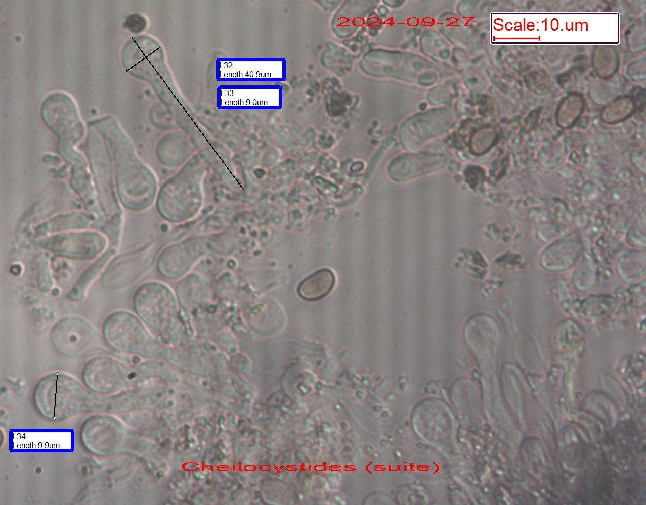 La microscopie est conforme à l'espèce avec de belles cystides capitées :