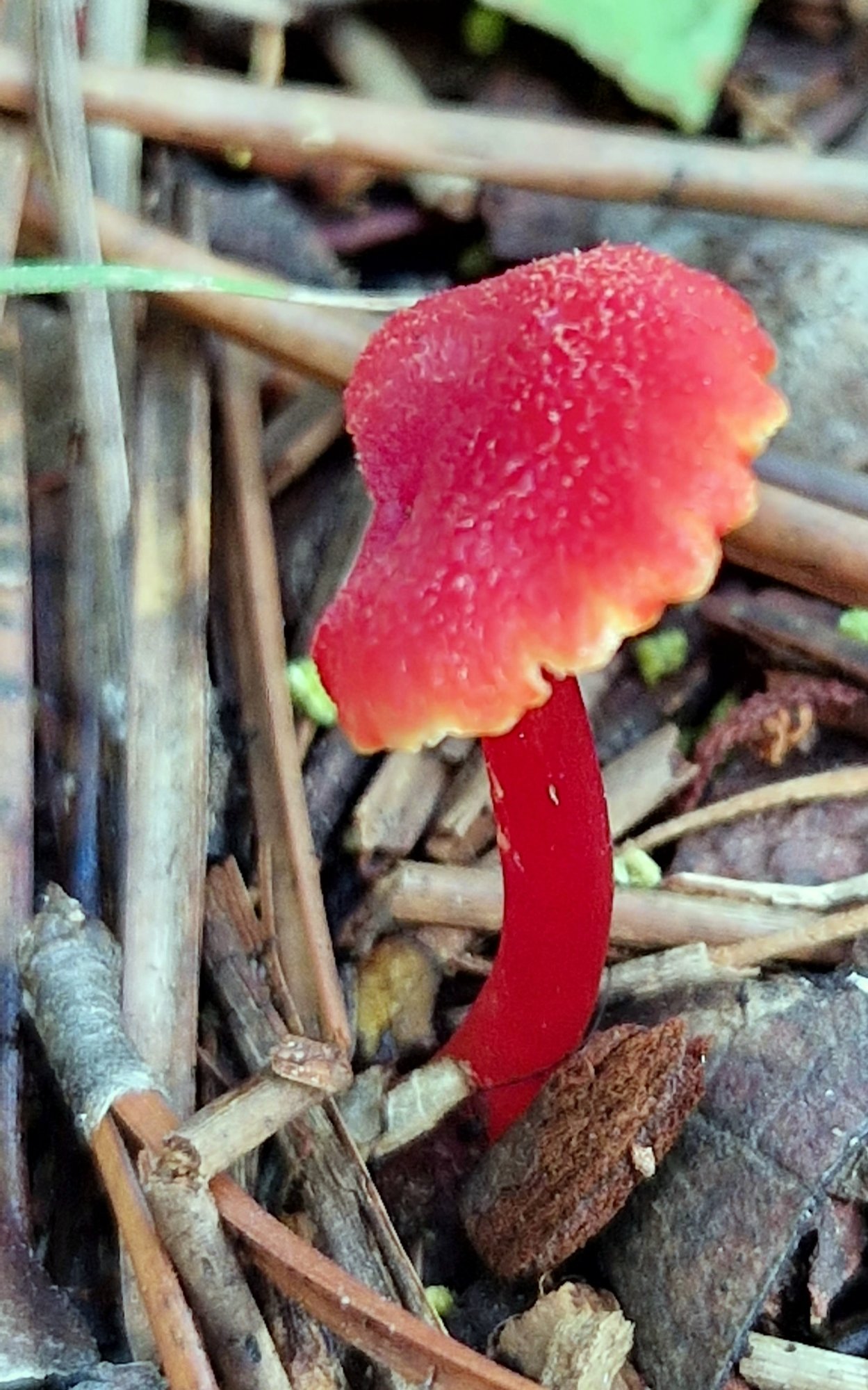 Ici, Hygrocybe miniata ne me dérange pas, avec les mèches de cette couleur sur la cuticule.