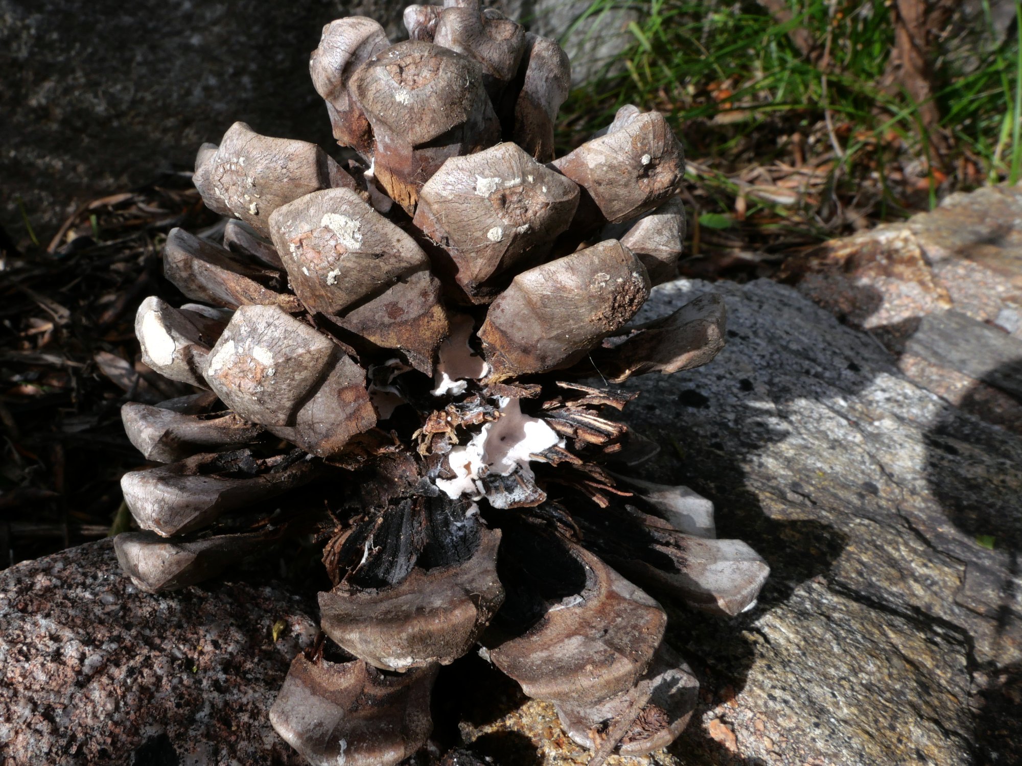 Comme a dit Fifi, on peut trouver des kyrielles de corticiés blancs qui ressemblent plus ou moins, il y en a plusieurs pages rien que sur le FTE, on arrivera à rien. Soit un des mycologues expérimentés du forum connait un truc blanc qui pousse à l'intérieur d'un strobile de pin pignon, soit on oublie.