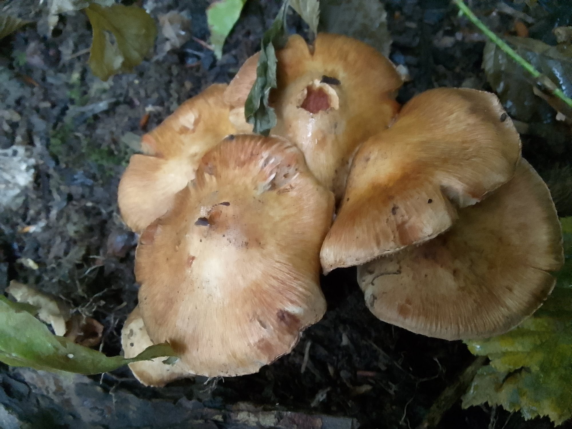 Même arbre, même odeur entétante, qui signe le champi (ou le groupe ? ) hier mais ils sont visuellement très différents. Des specimens plus pâle, isolés, et correspondant à ceux que je vous ai montré l'année dernière poussaient à 2 m.