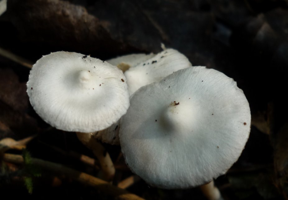 Chapeau ne dépassant pas 3 cm environ, blanc, mamelon prononcé, nettement fibrilleux, odeur spermatique, lames un peu brunâtres et denticulées apparemment. Pied nettement pruineux au sommet.