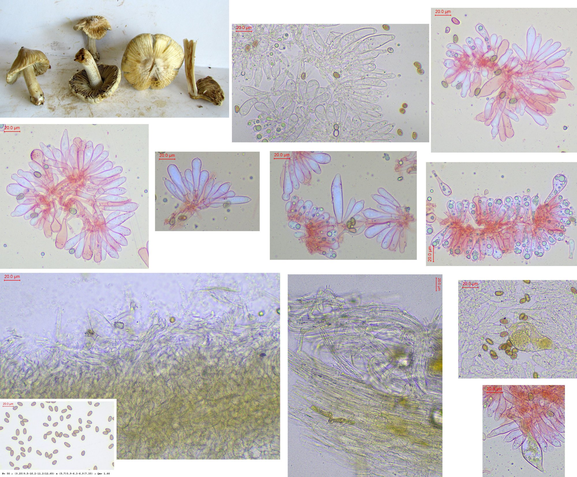 3- cheilocystides dans l'ammoniaque, avec mesures