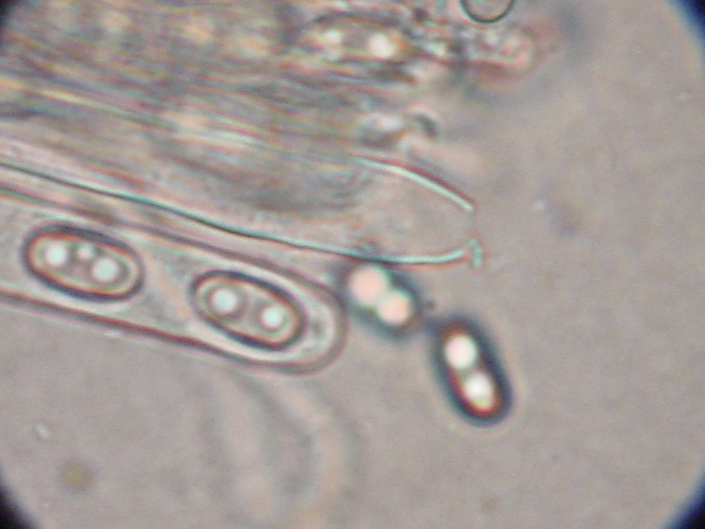 Voilà une micro que je viens de faire spores bigutulées de en moyenne 12/6 micron, asques octosporés et operculé