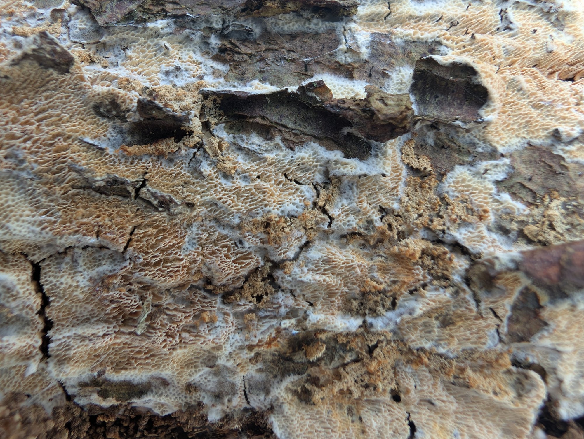 Avec cet hyménium nettement poroïde à 3-4 pores/mm, deux espèces de Xylodon sont possibles.