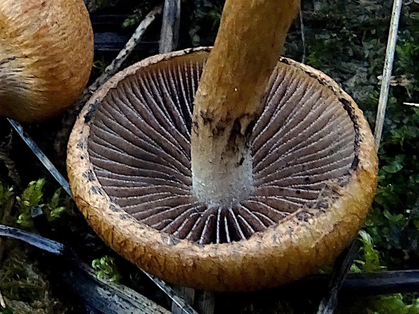 En macro, j'ai des lames marbrées, comme l'indique MycoDB (voir photo de détail) et mes exemplaires correspondent très bien à la description