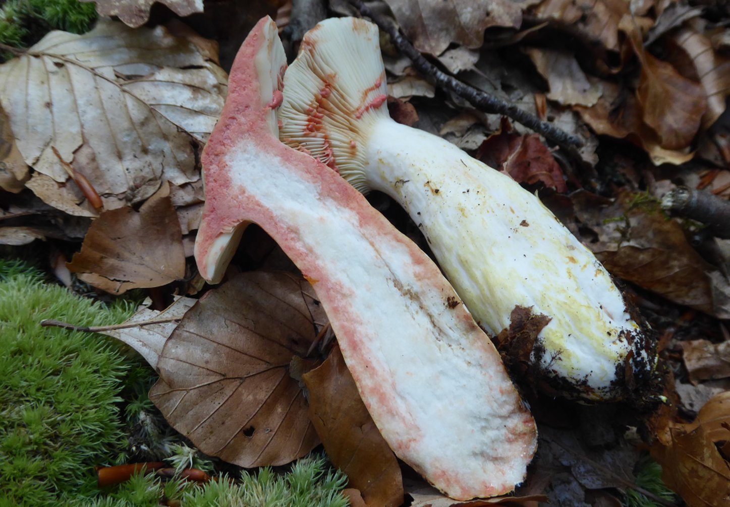 Latex assez abondant, rapidement rose vif (moins de 30 secondes), ainsi que la chair (sauf centre du pied)