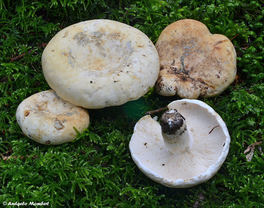 Il s'agit de Lactarius glaucescens (= L. pergamenus s. auct.), un lactaire proche de L. piperatus mais dont le lait verdit lentement, et qui réagit vivement en jaune orangé au KOH.