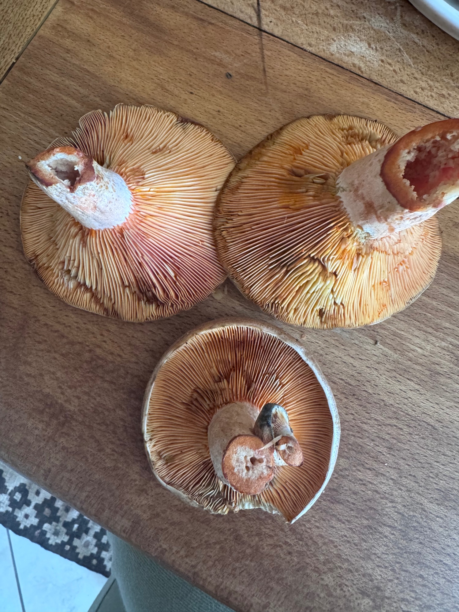 Zones sur le chapeau. Pied scrubulé, lait orange, goût épicé et verdit doucement. Le lait ne devient pas rouge.