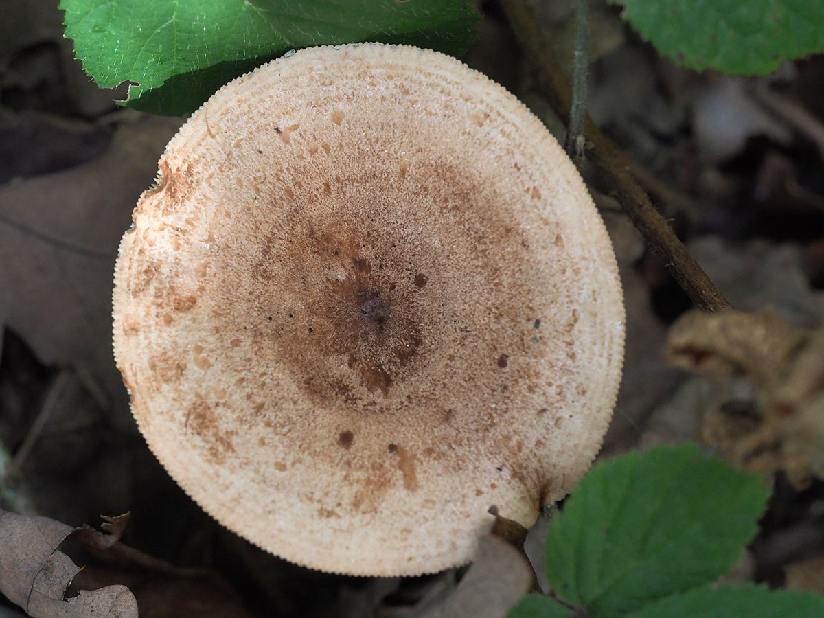 Chapeau beige plus ou moins foncé, zoné légèrement, à marge glâbre