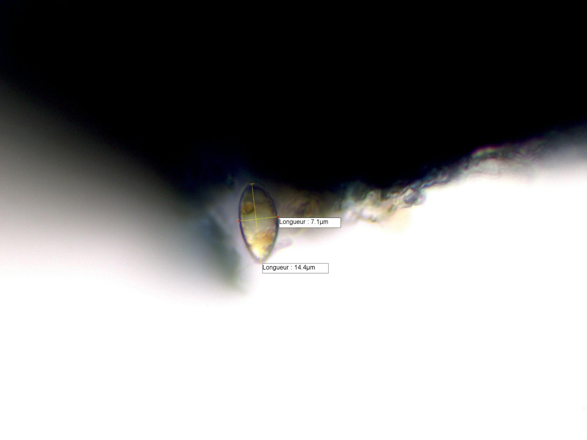 La taille des spores diffère selon les auteurs mais cet ouvrage de référence tout de même donne une fourchette assez large ( 10-20) x (5-10).