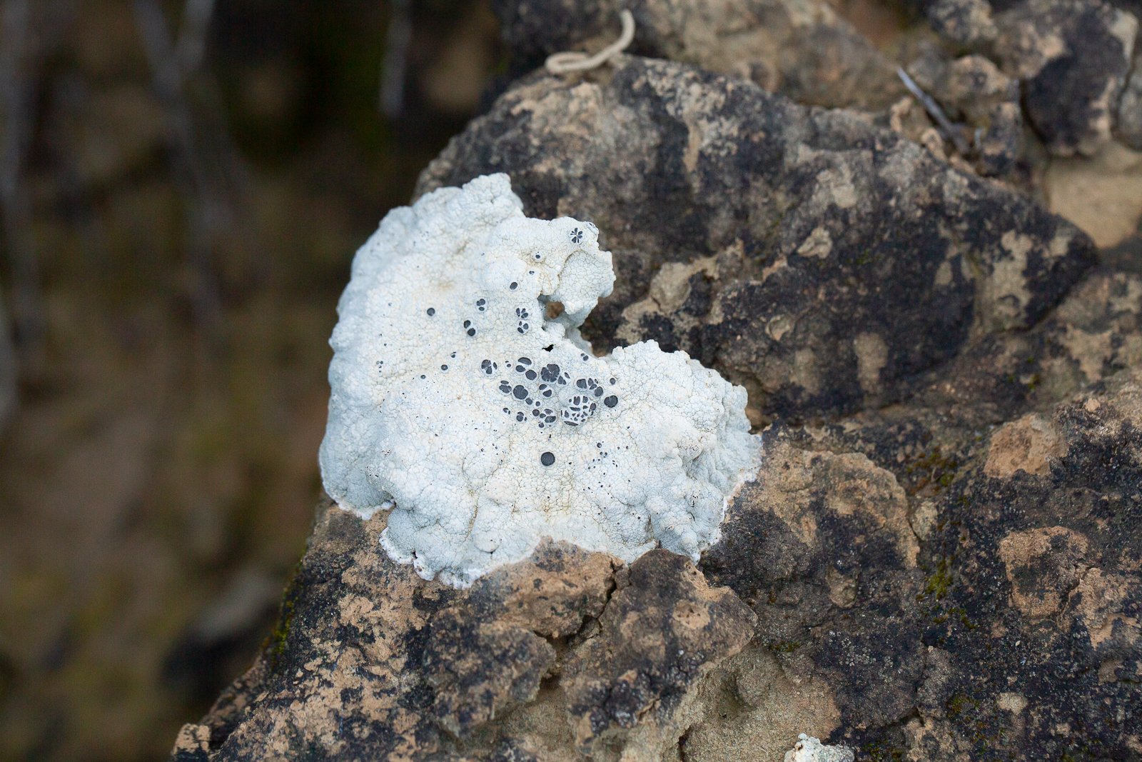 Je n'ai pas les mêmes yeux que Ghislaine car je ne vois pas de nuance jaunâtre (le thalle me semble parfaitement blanc) mais à part ça, et à part que le thalle n'est pas aréolé, je ne trouve rien de mieux que Diplochistes scruposus.