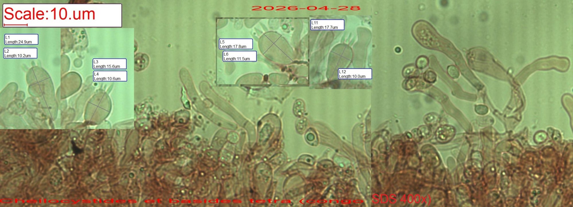 Il semble qu'il y ait aussi des basides bisporiques en mélange.