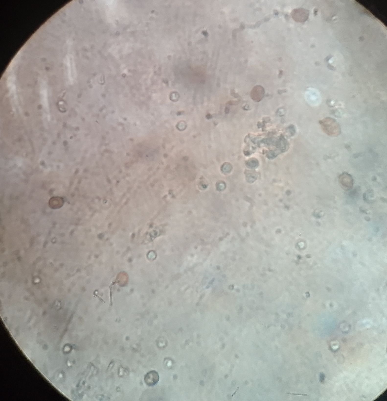Micro qui suit. Spores plutôt globuleuses, un peu bleutées. variables en taille 3-5.