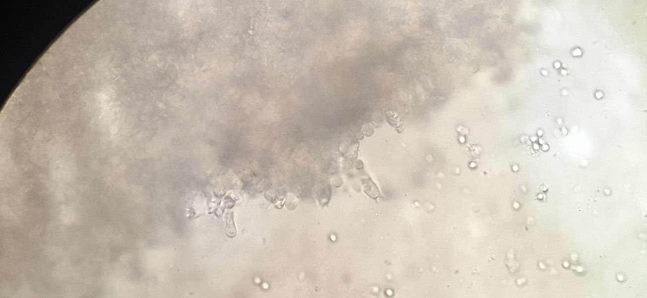 Micro qui suit. Spores plutôt globuleuses, un peu bleutées. variables en taille 3-5.