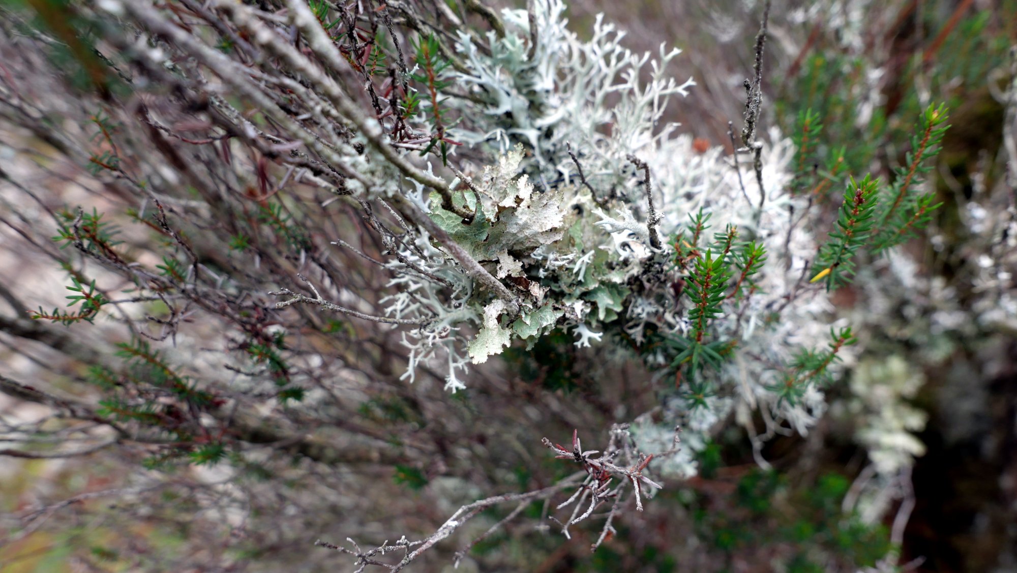 De retour de Corse ce soir, j'ai présenté un champignon et une plante, il manquait un lichen. Celui-ci est pour Cécile. Car en plein milieu de la forêt de L'Ospedale, je pense à Cécile. D'autant que je crains plusieurs espèces et que je suis sûr qu'il va y avoir besoin de ses petites flèches, si tant est que les photos soient exploitables. Vers 900 m, sur bruyère arborescente comme indiqué en titre, le 11/11/22 : Jplm