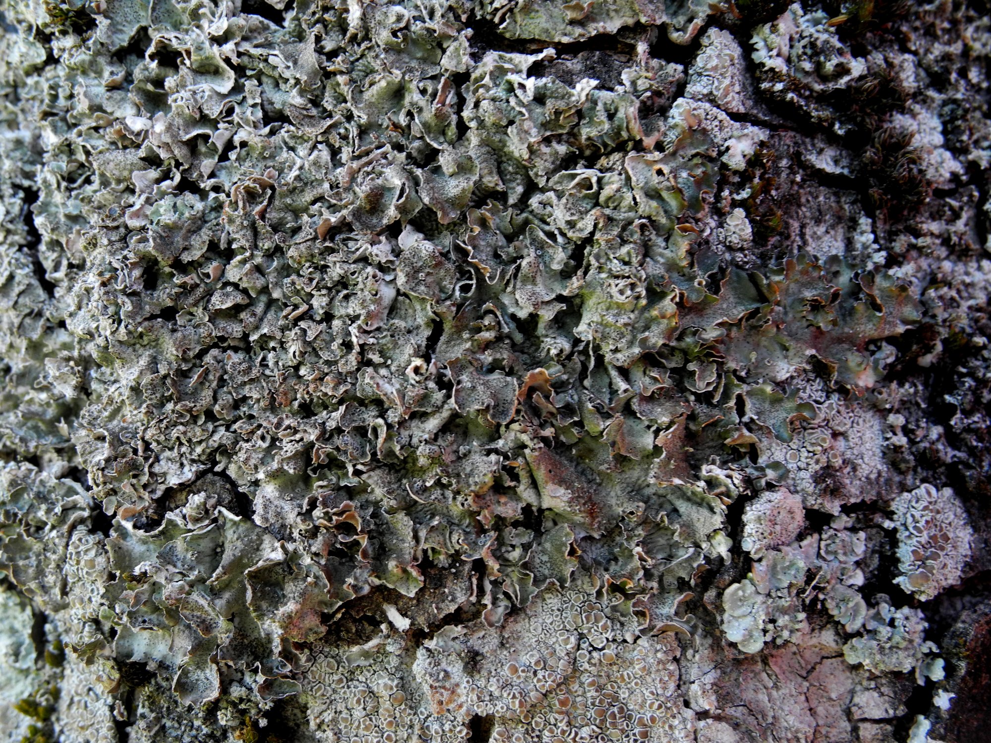 Je voulais blaguer sur le thème "apothécies nulle part, pycnides partout", croyant illustrer la remarque d'une collègue de Lichen Go ! sur les différences entre les spécimens de ville et les spécimens de forêt pour une même espèce, qui s'appliquait entre autre à Pleurosticta acetabulum que l'on observe presque toujours sans apothécies dans les villes ...