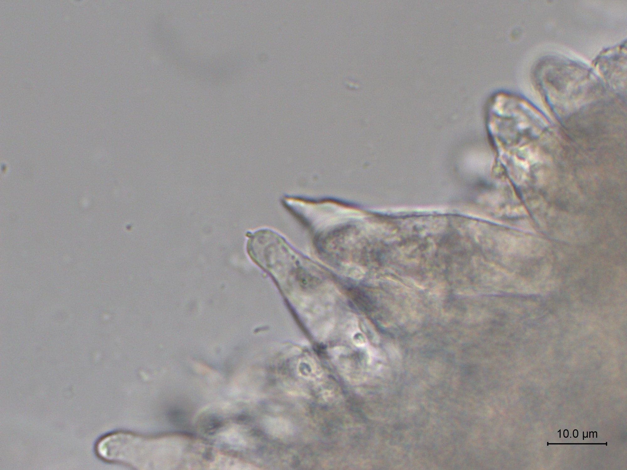 En revanche, nombreuses cheilos fusiformes à lagéniformes sur l'arête, souvent mucronées. Et peu de pleuros.