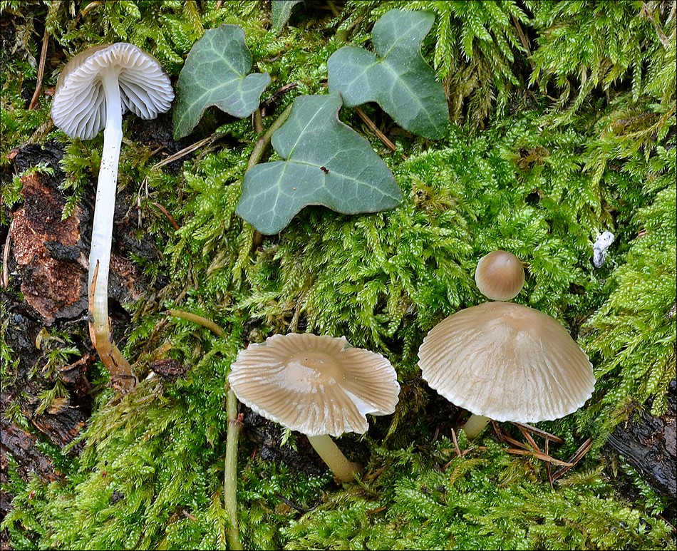 Très jolie mycène, trouvée ce matin dans un parc, sur l'écorce moussue d'un cèdre vivant (Cedrus sp.).