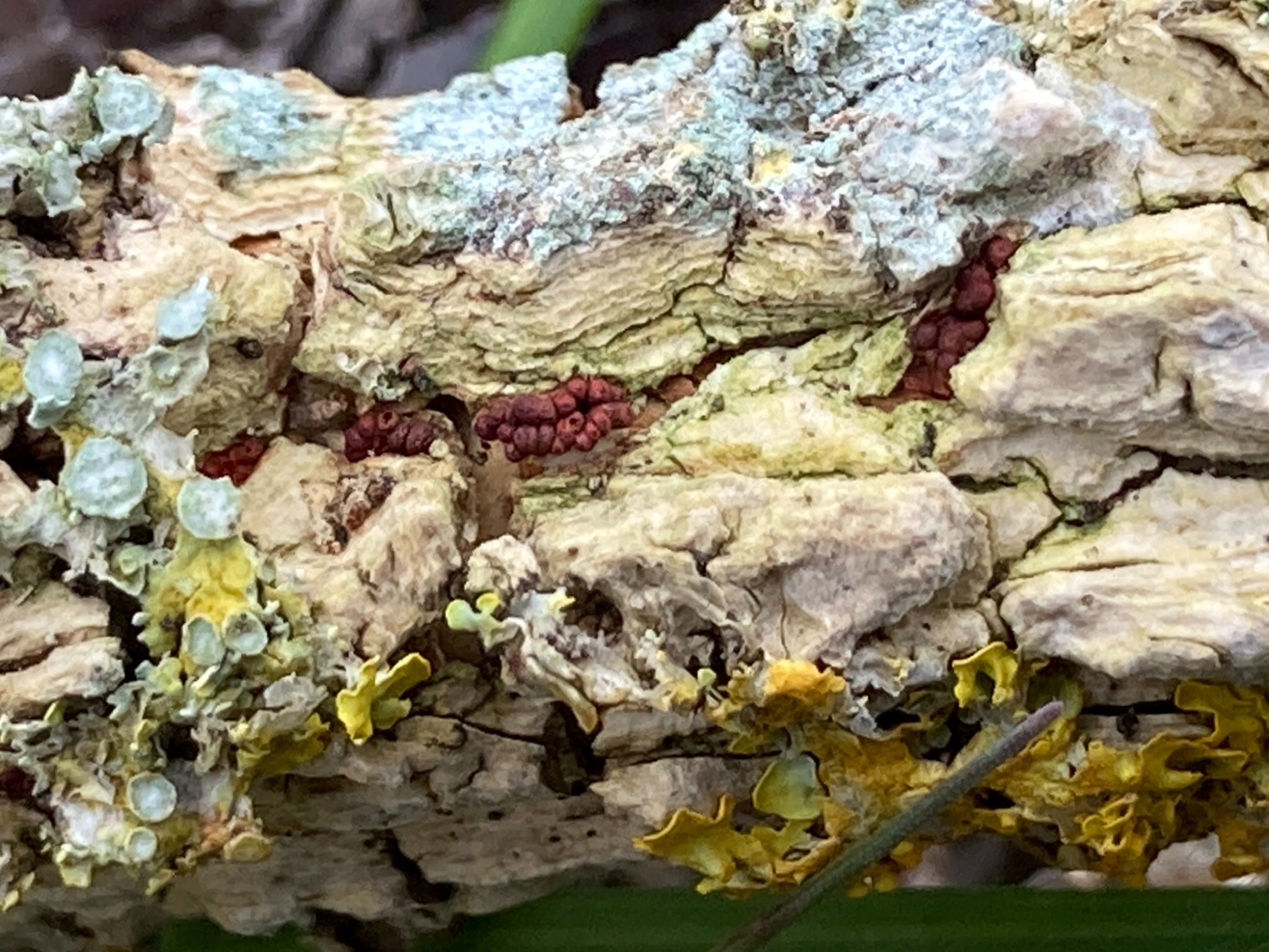 Nectria mariae possible, mais difficile de confirmer avec cette photo ''vu d'avion''. Les exemplaires sont un peu ''passés'', ce qui expliquerait la couleur un peu terne.