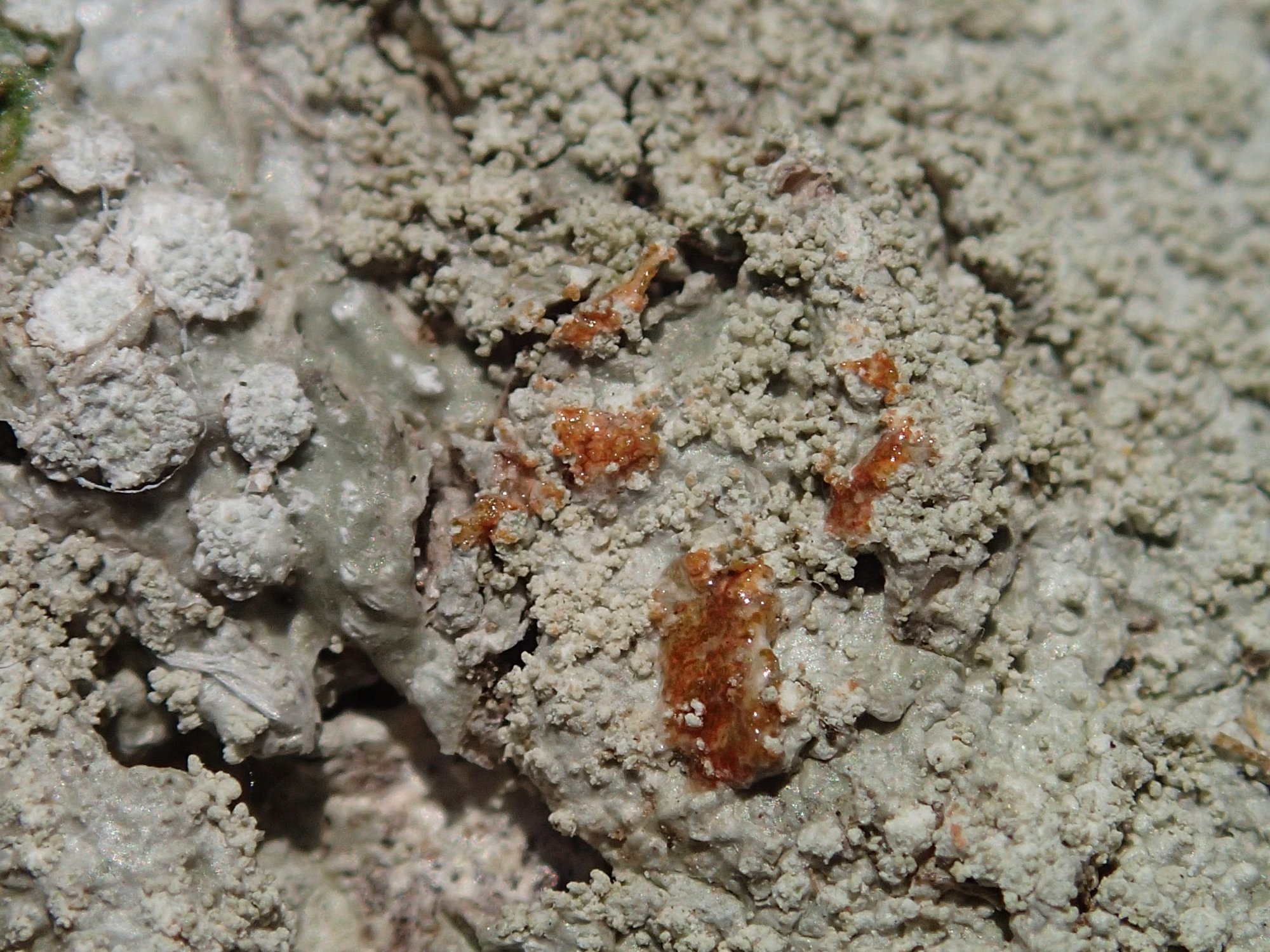 Les échantillons présentent 2 espèces ce qui explique très certainement les réactions observées par Thierry. Il y a un peu de Lepra albescens, KC- et non amer. Pour l’Ochrolechia, il s’agit au final de O. subviridis avec sa réaction C+ rouge et non de O. microstictioides. Cette réaction est très bien visible sur les sorédies mais plus faible et plus lente à venir sur l’hypothalle blanc.