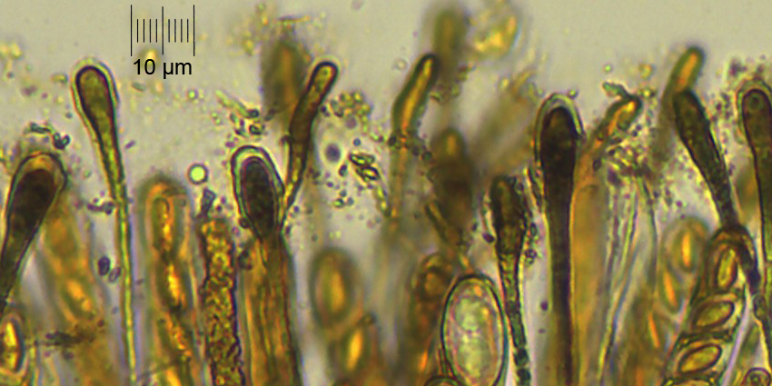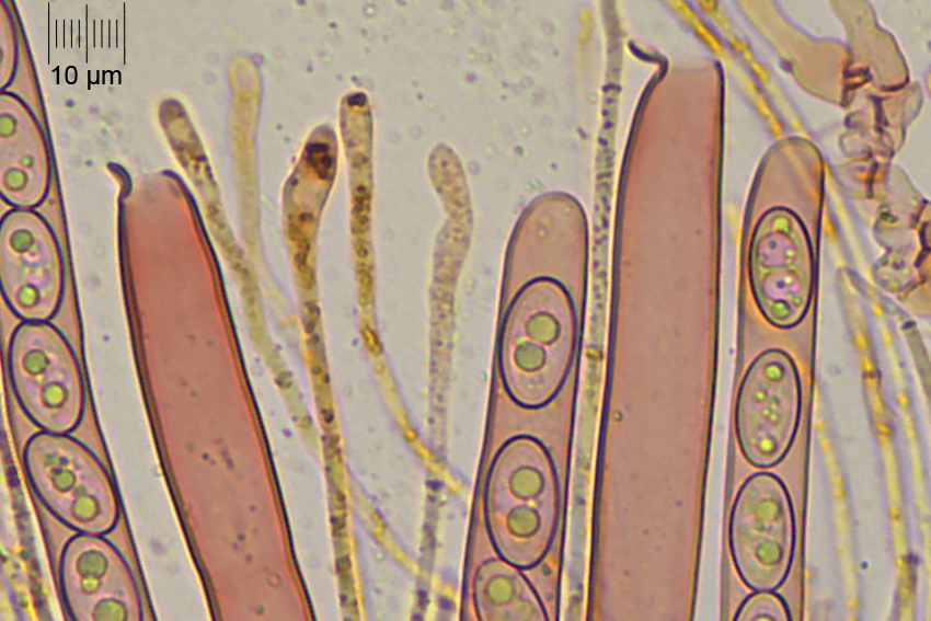 Et pour terminer, il faut s'attacher à la forme des paraphyses (cylindriques, non courbées), des spores (régulièrement ellipsoïdes, non fusiforme) et des poils.