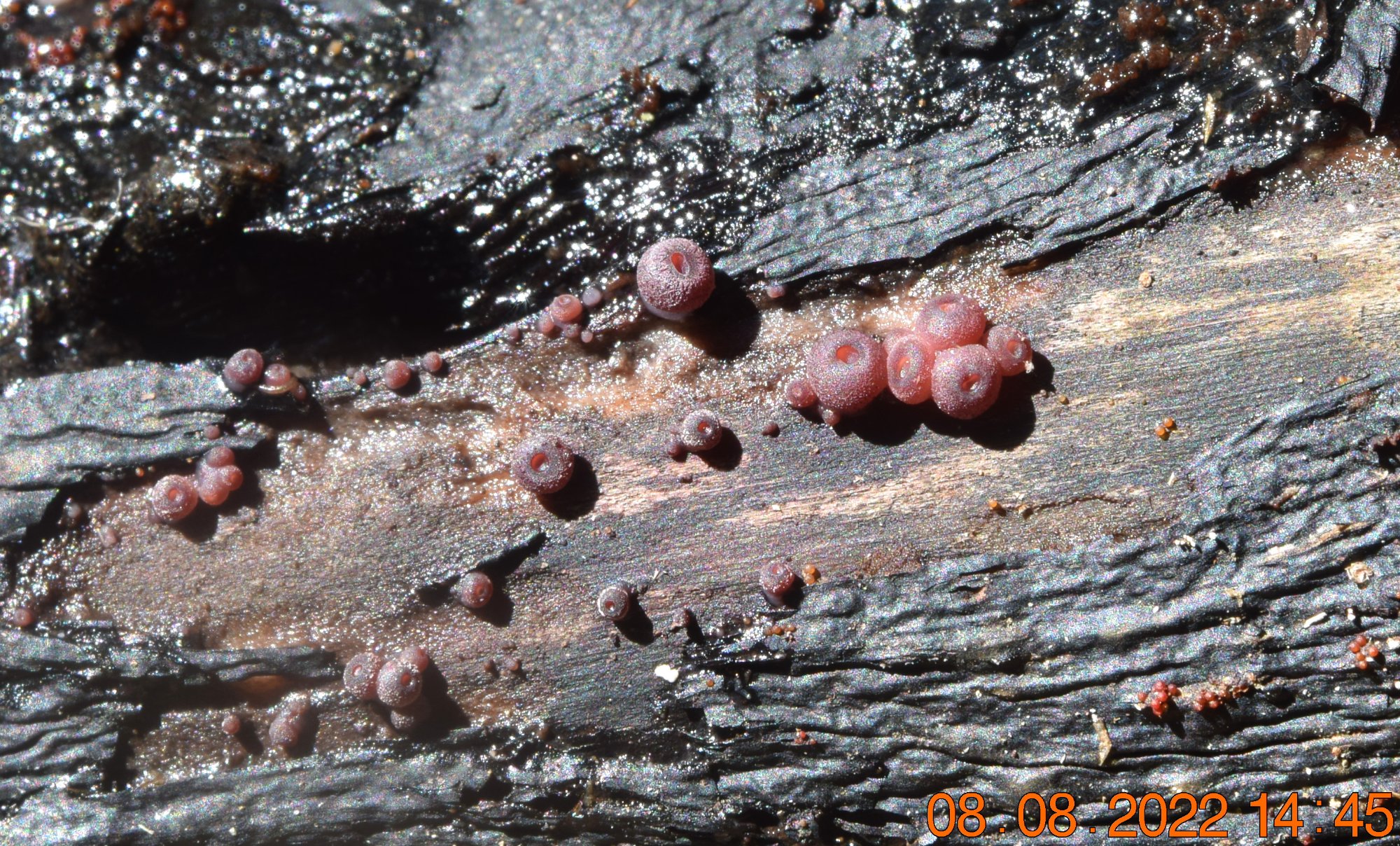 cela a un peu le faciès de jeunes Plectania melastoma mais pas du tout l'envergure et les couleurs. Texture assez ferme mais facilement coupable. J'ai passé la zone centrale au micro et n'ai vu rien de ce qui peut ressembler à des asques. Si cela évoque quelque chose pour vous ?