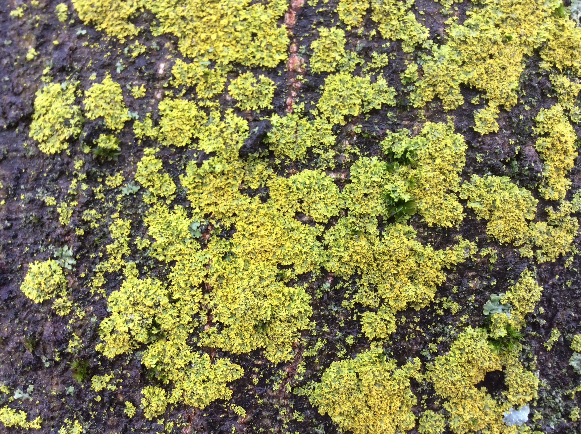 Ou alors on pourrait imaginer un Xanthoria parietina qui aurait des lobes extrêmement fragmentés, et dont les crampons pourraient être confondus avec des rhizines ...