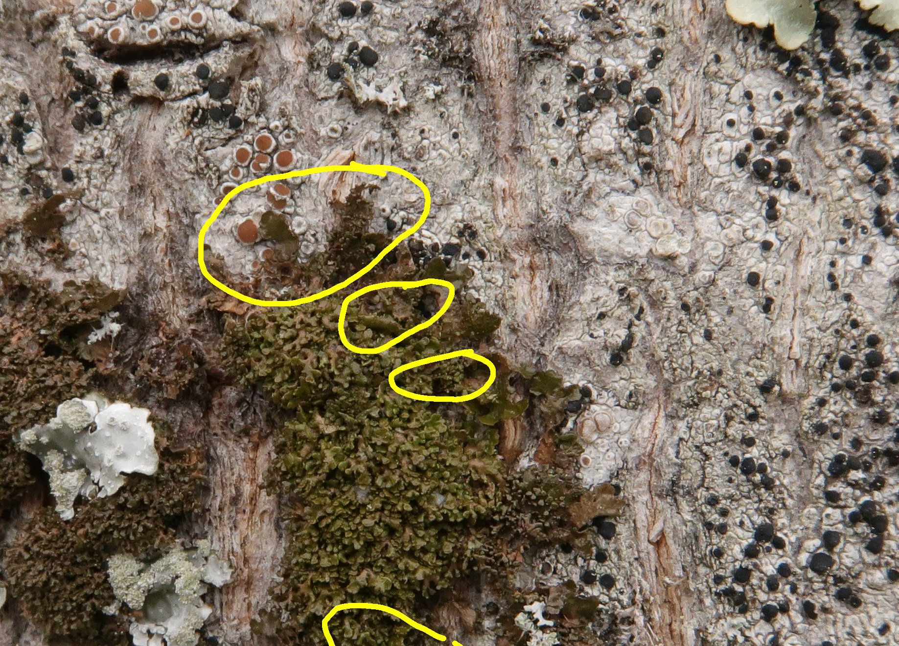 Merci pour vos retours, Ghislaine et Hugo. Du coup j'ai re-regardé mes photos et, à défaut de tracer des flèches sur les images, j'ai entouré les endroits qui me semblaient porter des isidies plus ou moins développées.