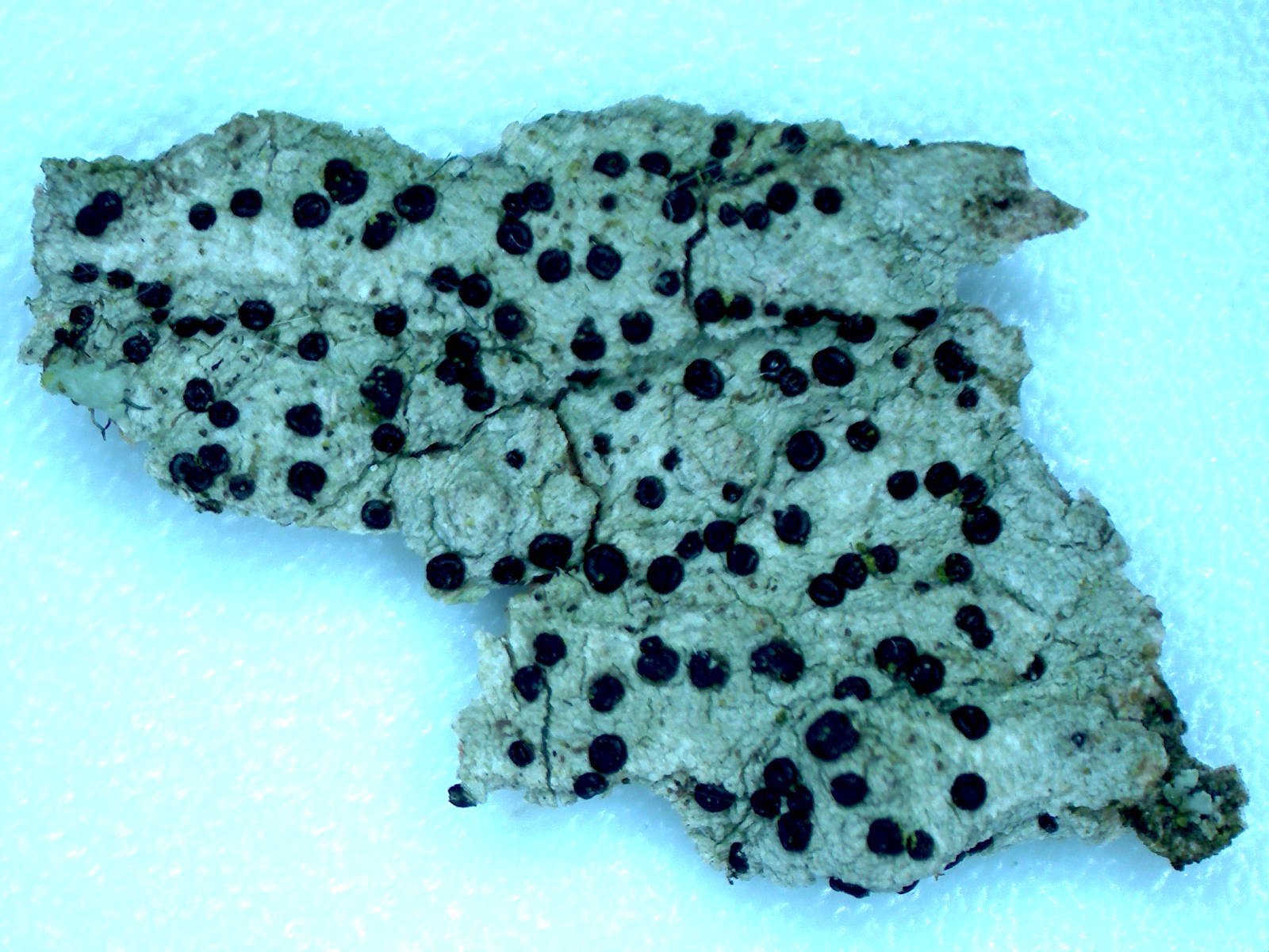 J'utilise la clé d'identification du site "Lichens Go" et je débouche sur le genre Amandinea.
