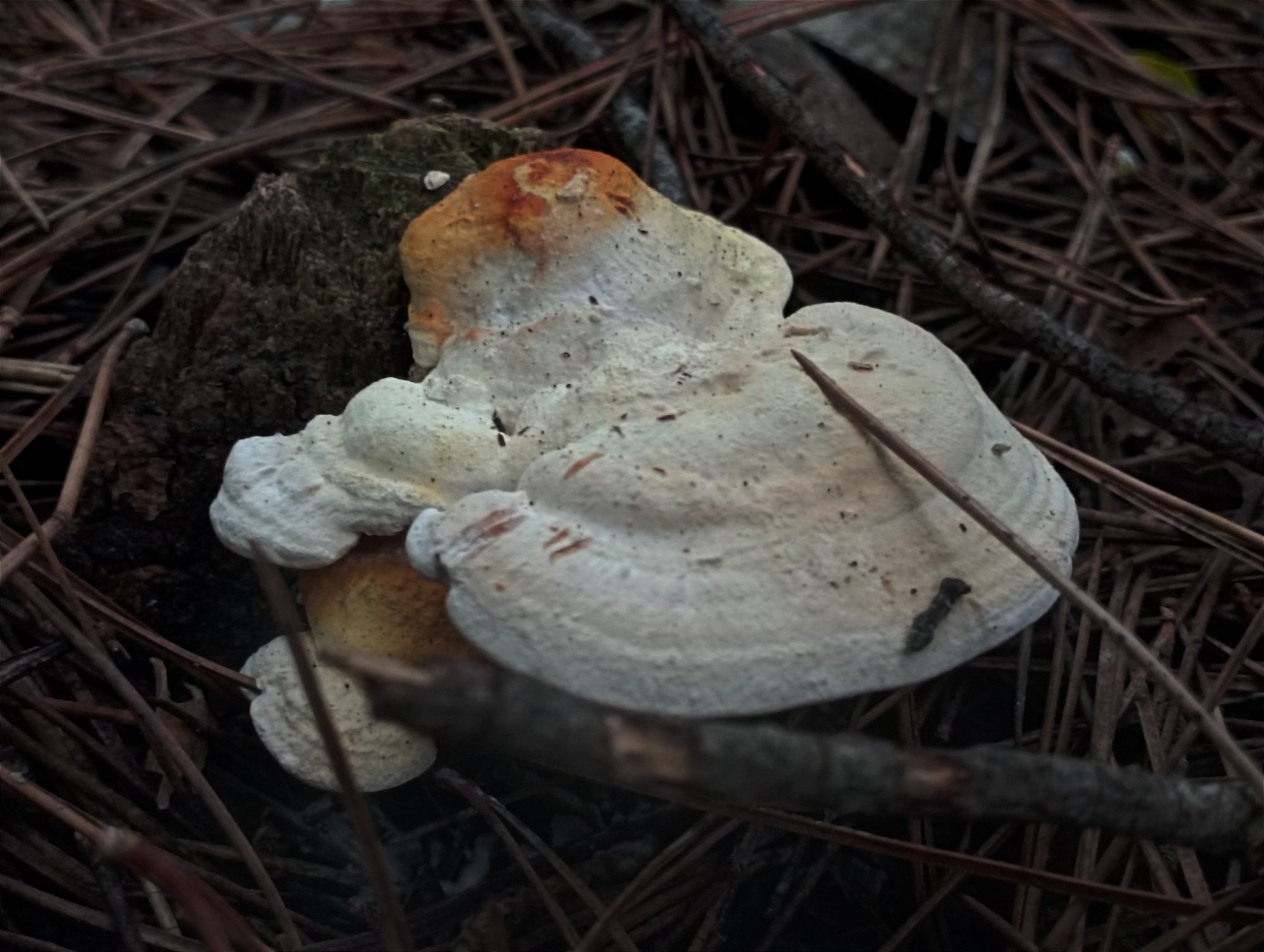 Hyménium blanc. (Lumière artificielle pour les photos).