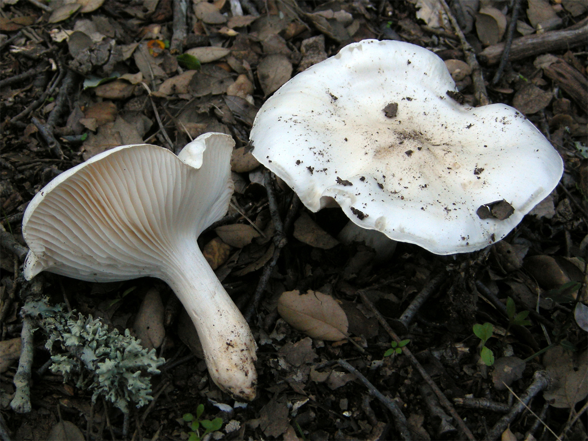 Toujours insatisfait de penarioides, je reste à la recherche d'un hygrophore au sens large (ça ne peut pas être autre chose qu'un hygrophore ???), blanc, trapu, à lames nettement décurrentes. Celui qui va le mieux est Hygrophorus fagi mais il est strictement lié aux hêtres et il n'y en a pas un à 50 km à la ronde. Je vois aussi Hygrocybe/Cuphophyllus berkeleyi, il est plus massif que la plupart des hygrocybes et peut atteindre 10 cm de diamètre, en revanche il vient dans les prairies plutôt que les sous-bois ou même du maquis arboré.