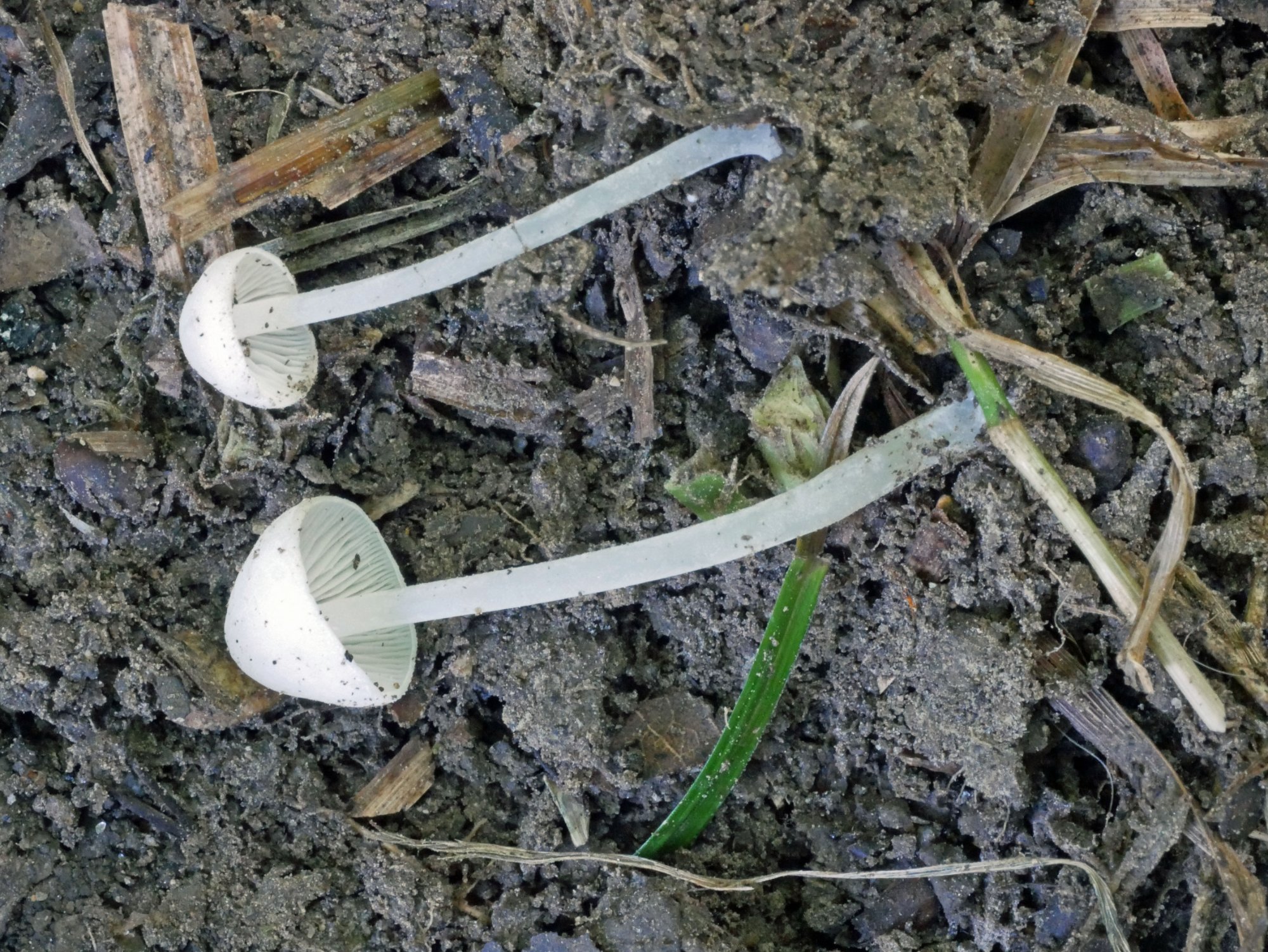 Chapeau nettement campanulé dia 3 à 7 mm, lames blanches larges, ventrues libres ou presque avec lamellules
