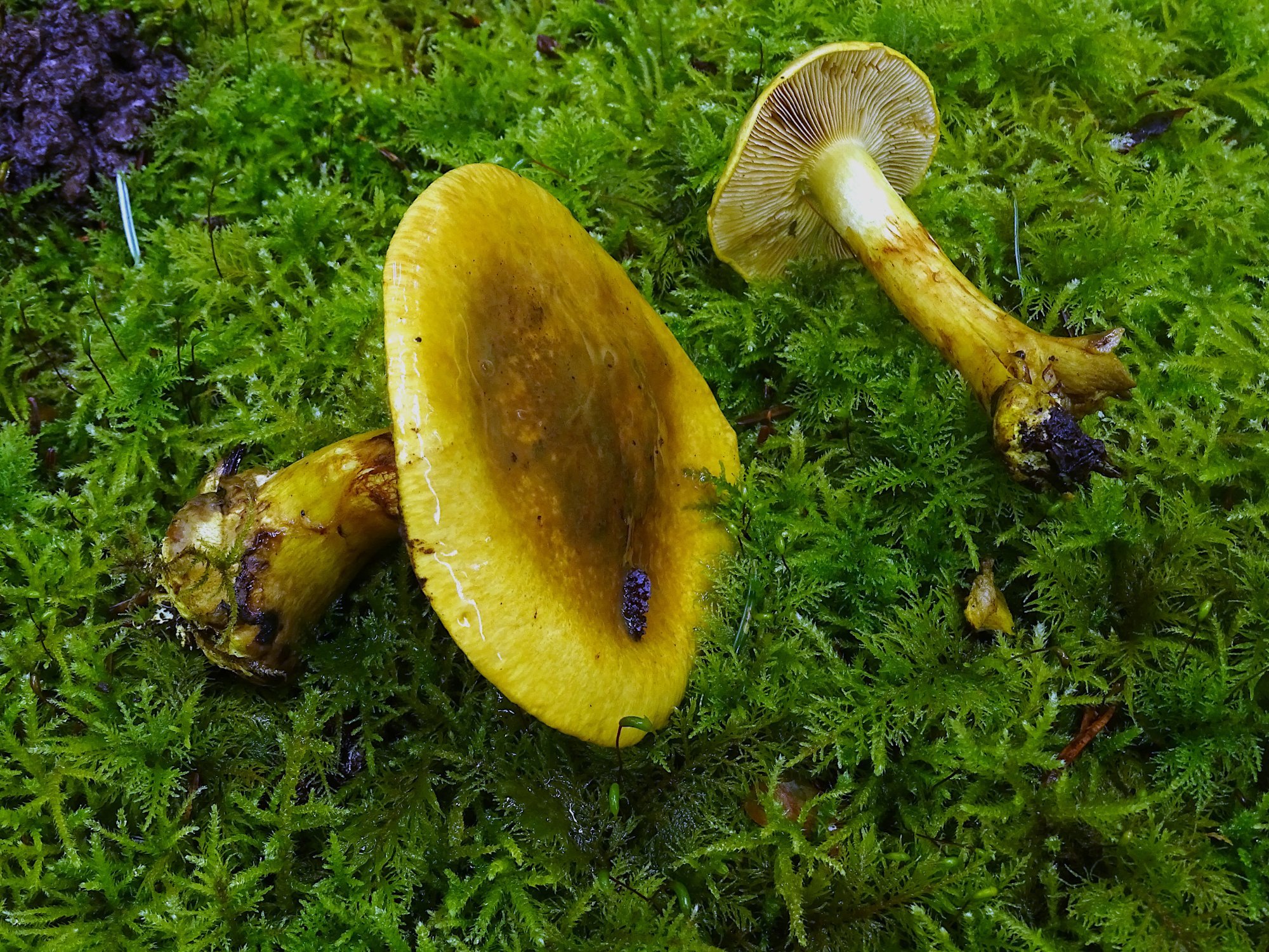 De beaux cortinaires jaunes à bulbe marginé et lames jaunes récoltés dans une forêt mêlée le 18 octobre.