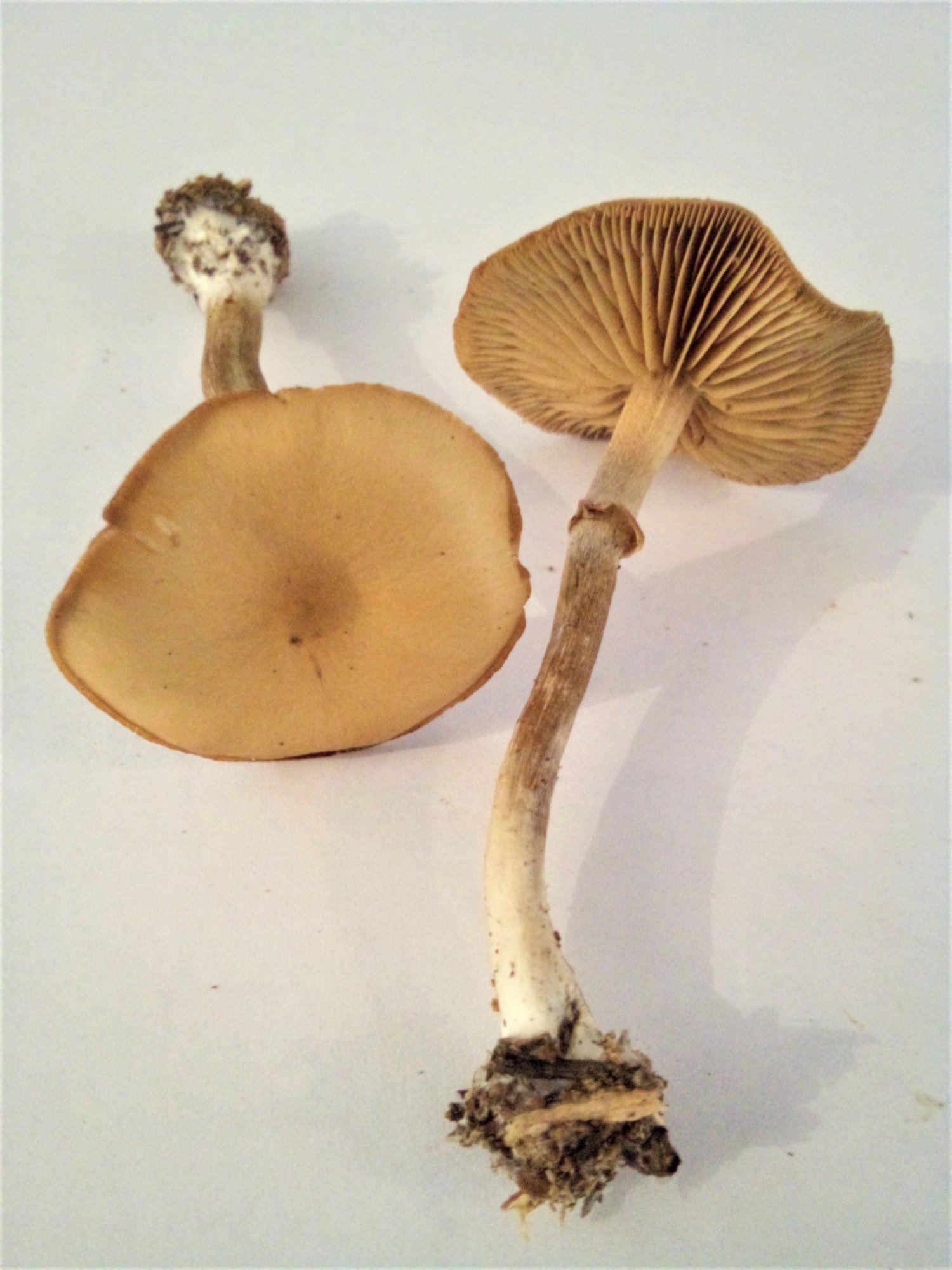 La piste Galerina marginata (ou proche de) ne me semble pas invraisemblable, elle peut prendre cet aspect au sec : un chapeau plus pâle et une marge peu excédante peu visible, qui s'est rétractée en s'assombrissant.