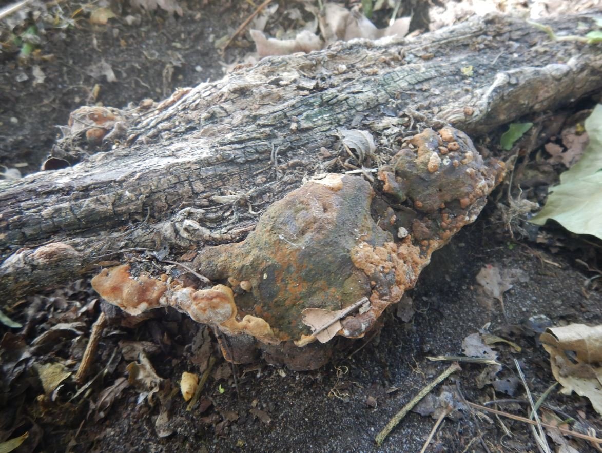 Ce qui oriente vers les Phellinus s.l. c'est surtout la couleur de l'hyménium, brun orangé. Après, difficile d'aller plus loin, sachant que les Phellinus ont été récemment éparpillés en plusieurs genres : Phellinus, Fuscoporia, Phylloporia, Fomitiporia, Phellinopsis...