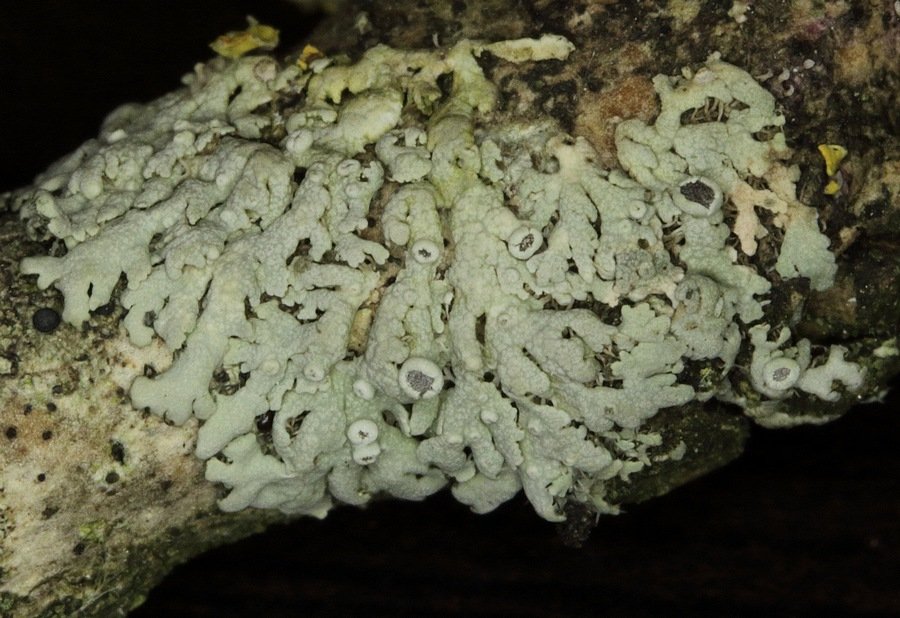 D'après l'aspect général et la couleur des apothécies, c'est effectivement un Physcia. Comme il est dépourvu de cils et de soralies, nous avons affaire à l'un des trois Physcia corticoles qui se ressemblent énormément : P. aipolia, P. stellaris et P. biziana.