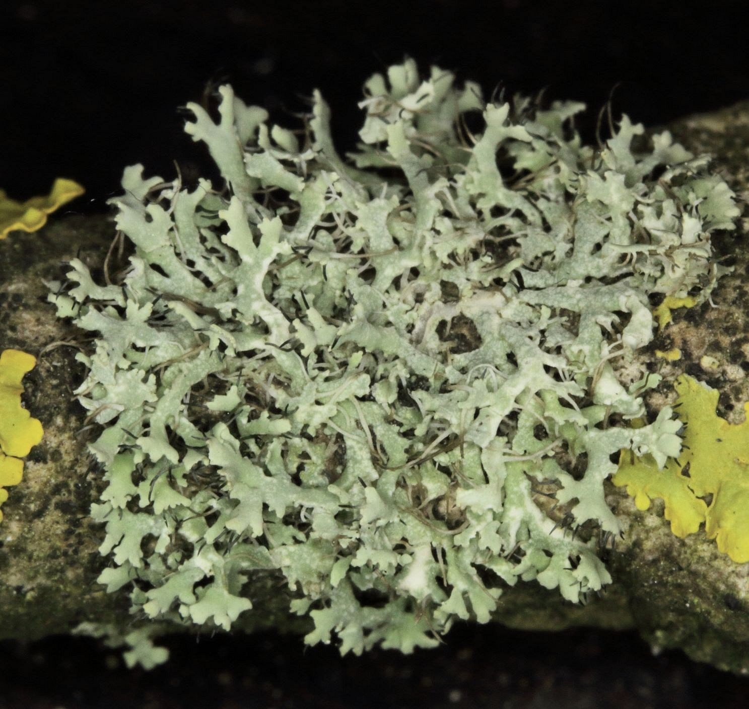 Comme cette jolie rosette est semble-t-il assez menue (le Xanthoria d'à-côté donne l'échelle), je vais mettre tout de suite un petit billet sur P. tenella