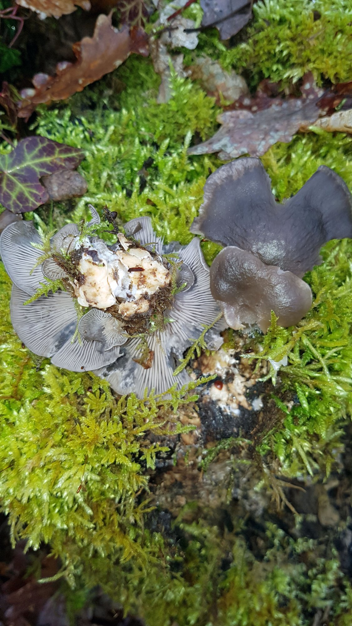 Ok, merci pour tout vos avis, personnellement je connais bien Pleurotus ostreatus, car "oh sacrilège" j'en récolte sur troncs de peupliers couchés, mais je n'en est jamais vus sur une vieille souche de chêne encore debout en terre et recouverte de mousse. De plus mes exemplaires sont petits comparés à Pleurotus ostreatus, 3 à 4 fois moins gros.