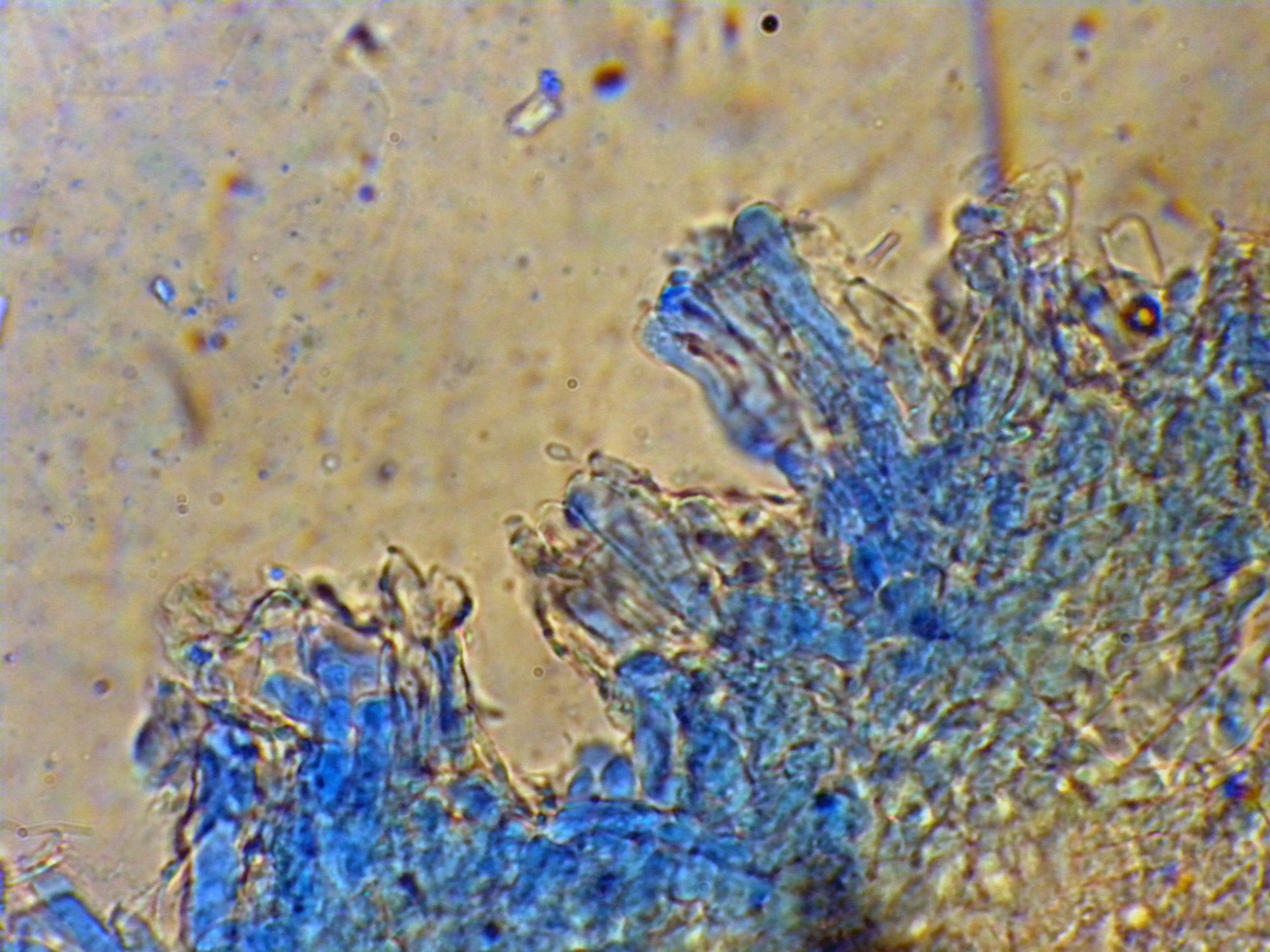 Je ne sais pas si le bleu de méthylène est le mieux approprié, mais toujours est-il que cela n'est pas facile de faire une belle micro de pleurocystides avec cette espèce?