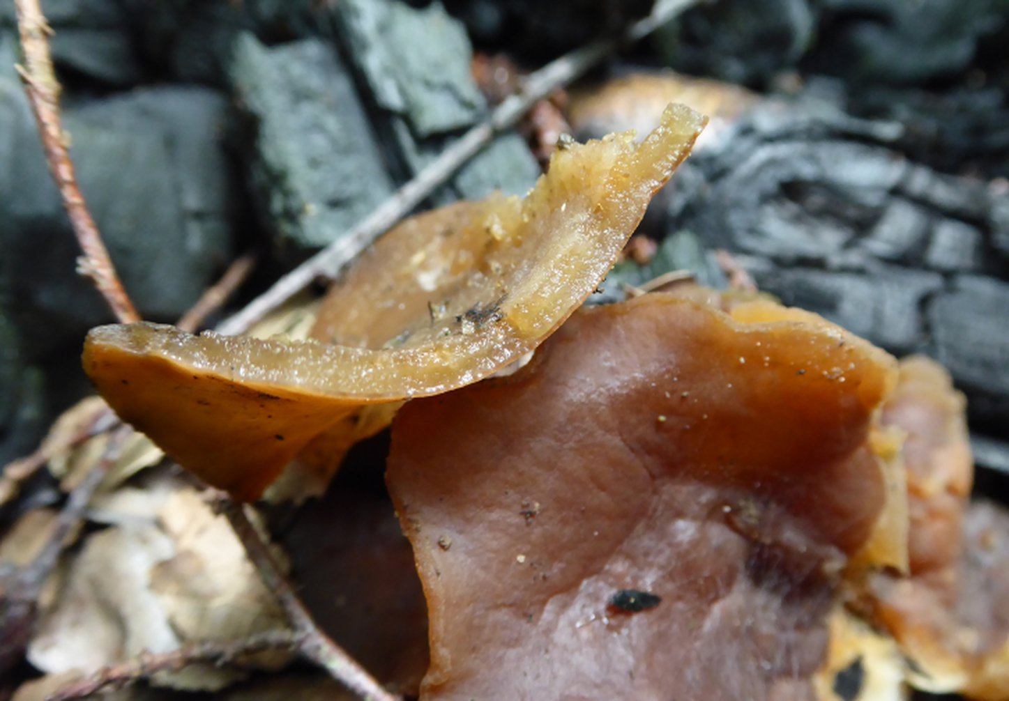 J'ai aussi trouvé une pézize ou assimilé. De belle taille, plusieurs centimètres, mais non mesurée . Odorante hier, moins aujourd'hui, complexe. Pas de latex observé.