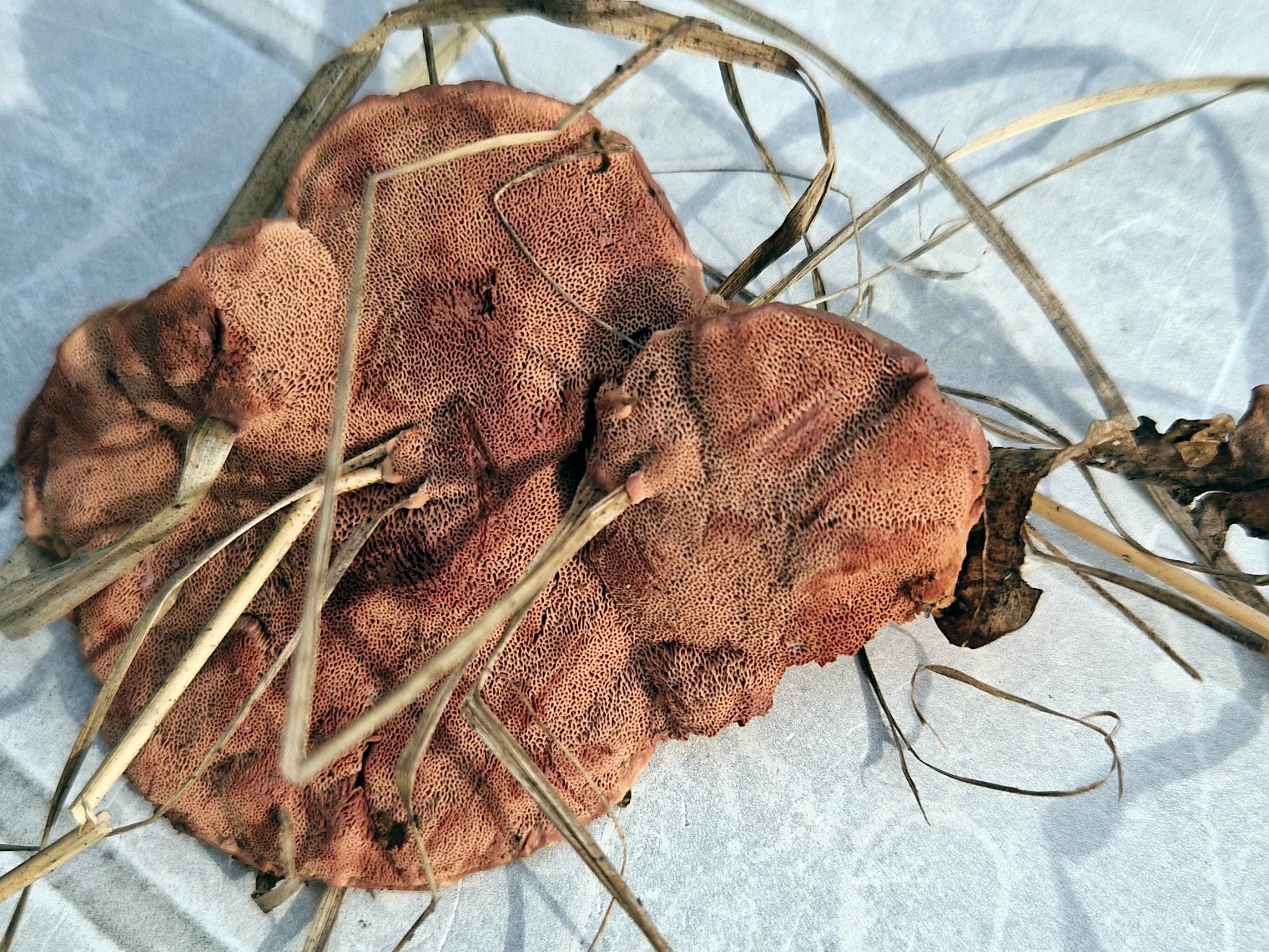 ), voici un fond de tiroir. Aucune photo sur site mais le champignon en avait emporté une partie avec lui ! C'était en forêt de Sénart le 15/08/23 sur bouleau mort (et non sur liège) au sol.