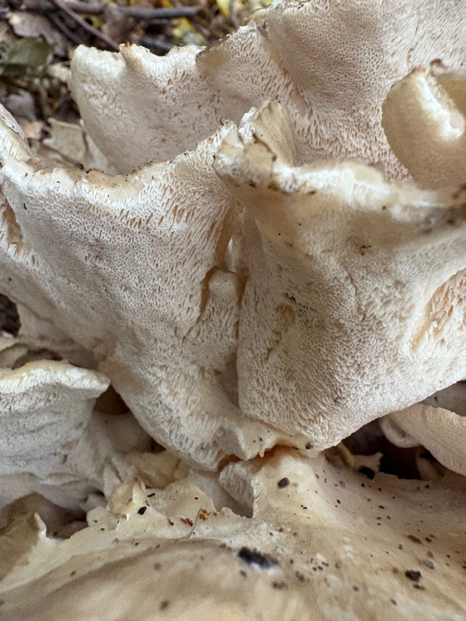 Oui +1 pour Grifola frondosa. Ça fait comme une multitude de polypores en spatule agglutinés. Chaque spatule est striée radialement et un peu zonée, contrairement à Polyporus umbellatus, plus rare il me semble, dont les petits chapeaux sont plus lisses et ont chacun un petit pied bien formé.